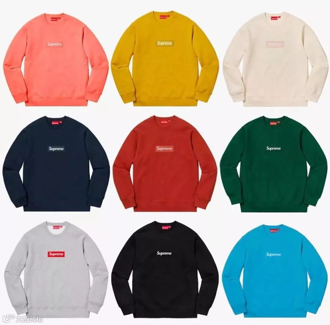 关于今年秋冬的Box Logo卫衣,,并不是像去年那样的常规 Box Logo 帽衫,而是选用了圆领卫衣版型,这也是 Supreme 时隔四年之后第一次用圆领卫衣发售 Box Logo。