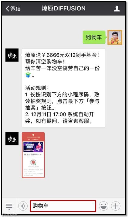 扫码回复「购物车」获取抽奖指南