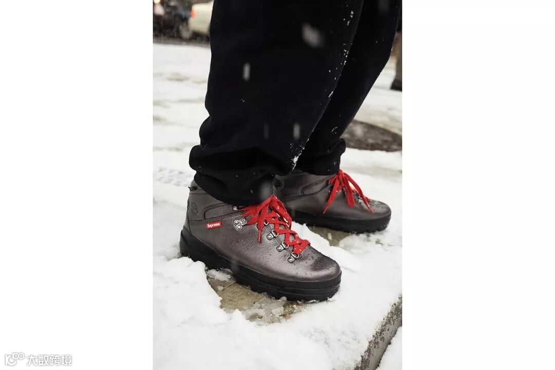 ▲ 继与日本宫田模型 Tamiya 的联名遥控四驱车上架之后,纽约街头品牌 Supreme 本周带来与户外专家 Timberland 的全新合作企划。今回 Supreme 选择 Timberland 经典的 World Hiker Front Country Boot 作为原型,并通过街头的手法进行重塑。系列中三双配色均采用高档防水皮革制作,搭载 Vibram 防滑橡胶外底,侧面点缀着红色的 Supreme 标布,并均配有额外两对鞋带供不同造型搭配。