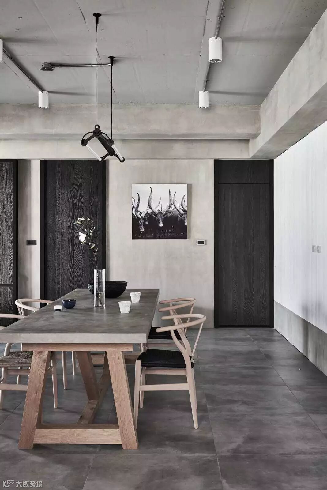 提及工业风,不少人都会想到黑白灰色系的装修,以及略显粗糙的铁制家具。除此之外,工业风还有一个重要的特色,那就是它无处不在的水泥元素,几乎不加任何修饰地暴露在人们的视野当中。
