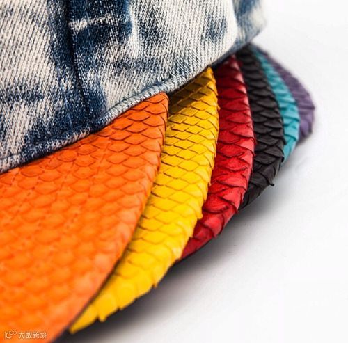 拿品牌打响名气的第一件产品来说,标志性的Just Don棒球帽在帽檐的面料选择就是用了珍贵的蟒蛇皮所制作。