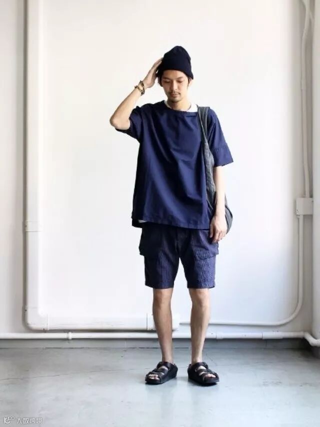 依然是叠穿元素,布包是「盐系」的点睛之笔,尽管短裤将脚毛暴露于视线下但毫无猥琐之感。此处温馨提示一下 #腿粗慎选#,不然就是时尚翻车现场了。