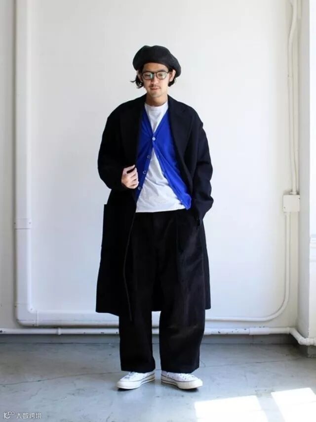 这套充满艺术家气息的穿搭,上身的叠穿带出了儒雅绅士范,下身宽松长裤搭帆布鞋,帆布鞋的出现一下子抖掉这套穿搭的绅士包袱,这也是产生亲和印象的关键点。