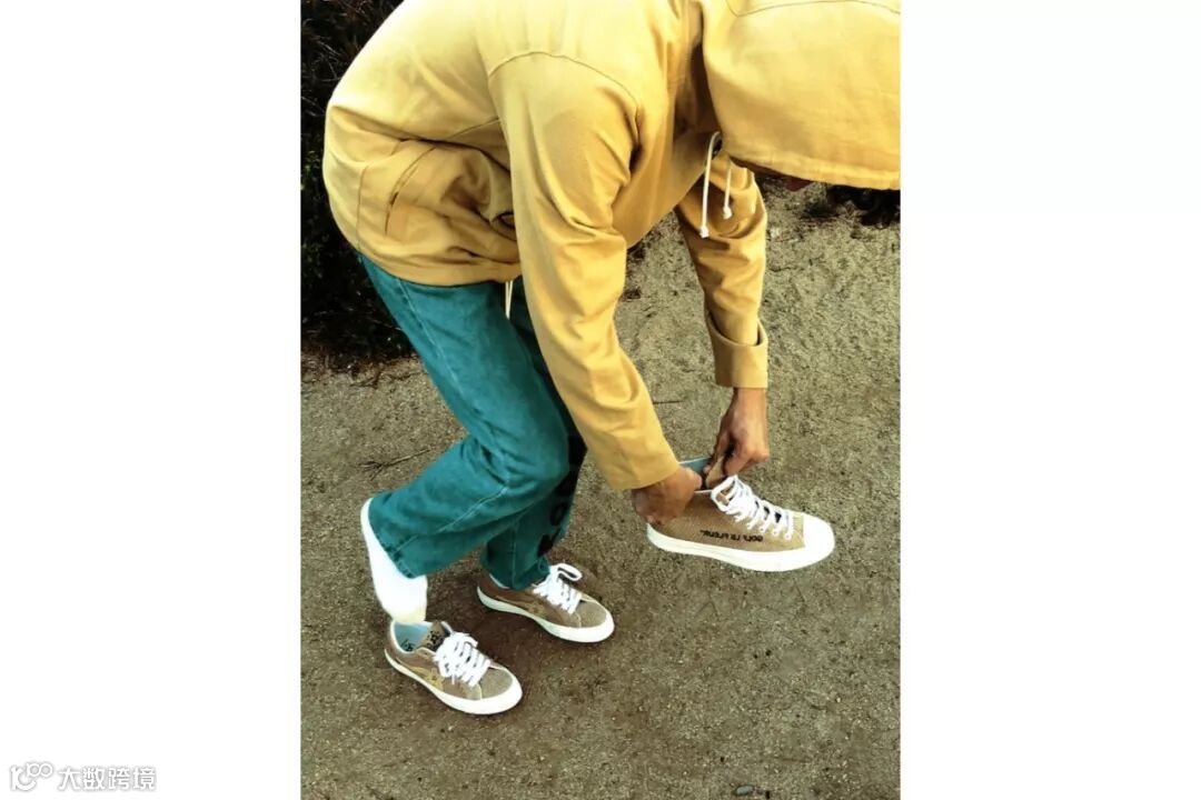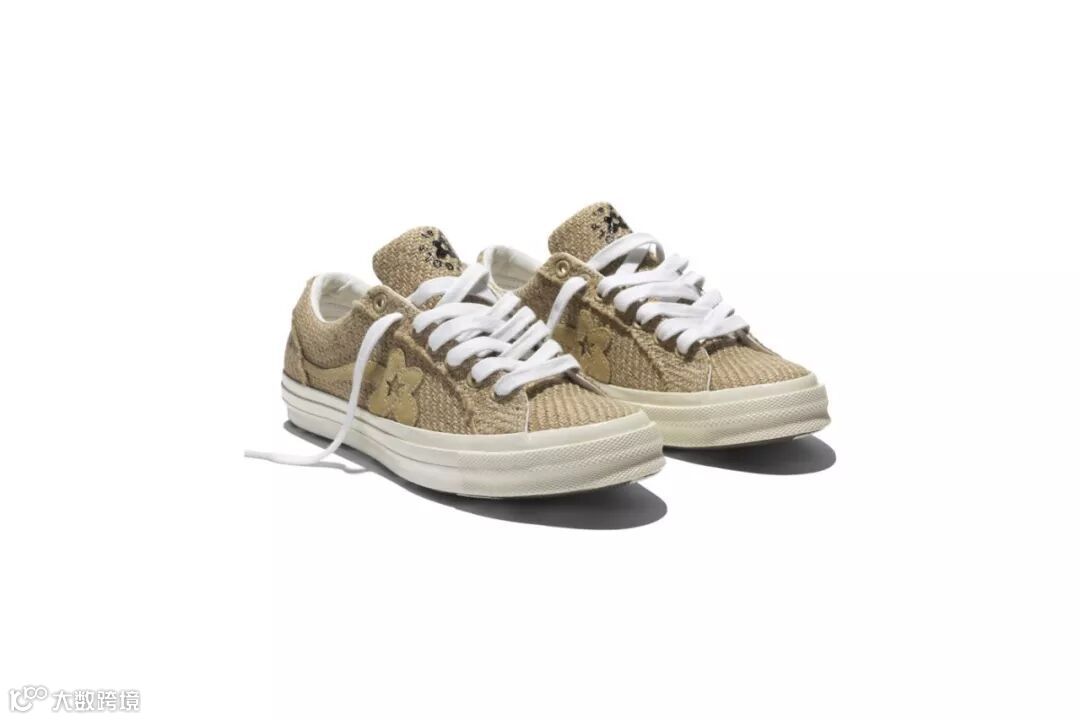 ▲.紧接三双鞋款的官方图片释出之后,Converse 正式揭开与 Tyler, the Creator 联名 GOLF le FLEUR* 全新「Burlap」系列的完整面纱。在这个系列中,Tyler, the Creator 首次将「Flower Boy」的概念从 One Star 延伸到 Chuck 70 之上,三双鞋款分别运用粗麻布和复古羊纸皮质感的帆布制作,并均点缀上签名式的「小花」和「GOLF le FLEUR*」字样,而同步推出的两件半拉链连帽外套亦与鞋款完美搭配。