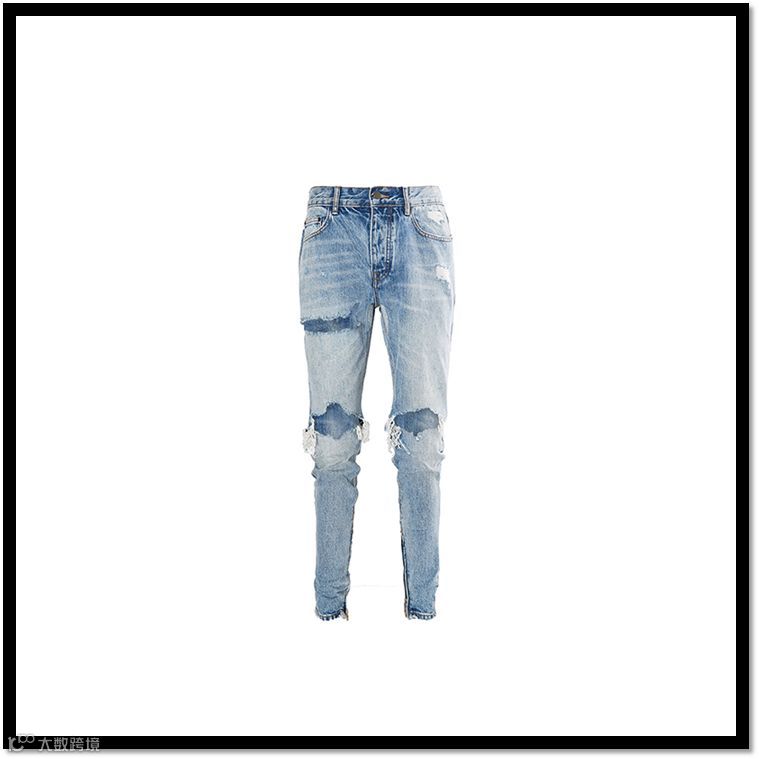 ▲ ITSCLIMAX 蓝色拉链小脚破洞牛仔裤