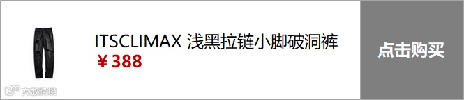 ▲ ITSCLIMAX 浅黑裤脚拉链小脚破洞裤