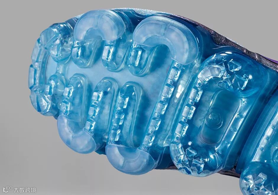 Nike Air VaporMax 采用分割式气垫符合人体工学,让脚掌在弯曲时能十分流畅地和分割处同步,气垫注入的空气含量为史上最多,瞬间回弹性超高。