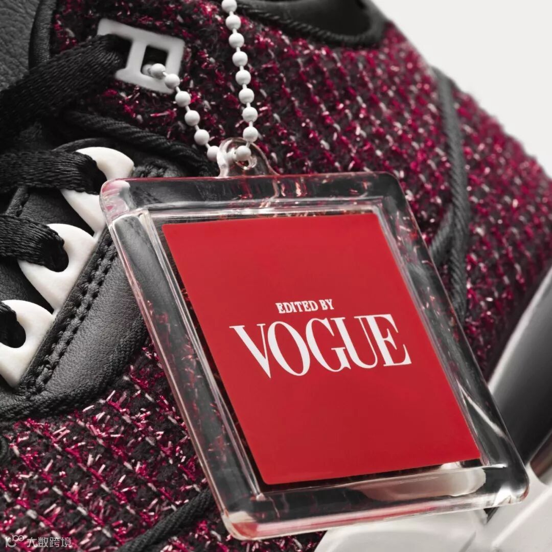 黑、红两双 Air Jordan 3 的鞋身设计则是受到 Anna 标志性的套装和墨镜造型启发,后跟点缀有「AWOK」的字样,同时也配有「Edited by Vogue」标牌。