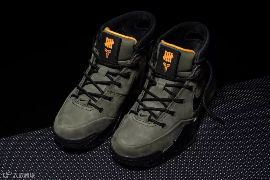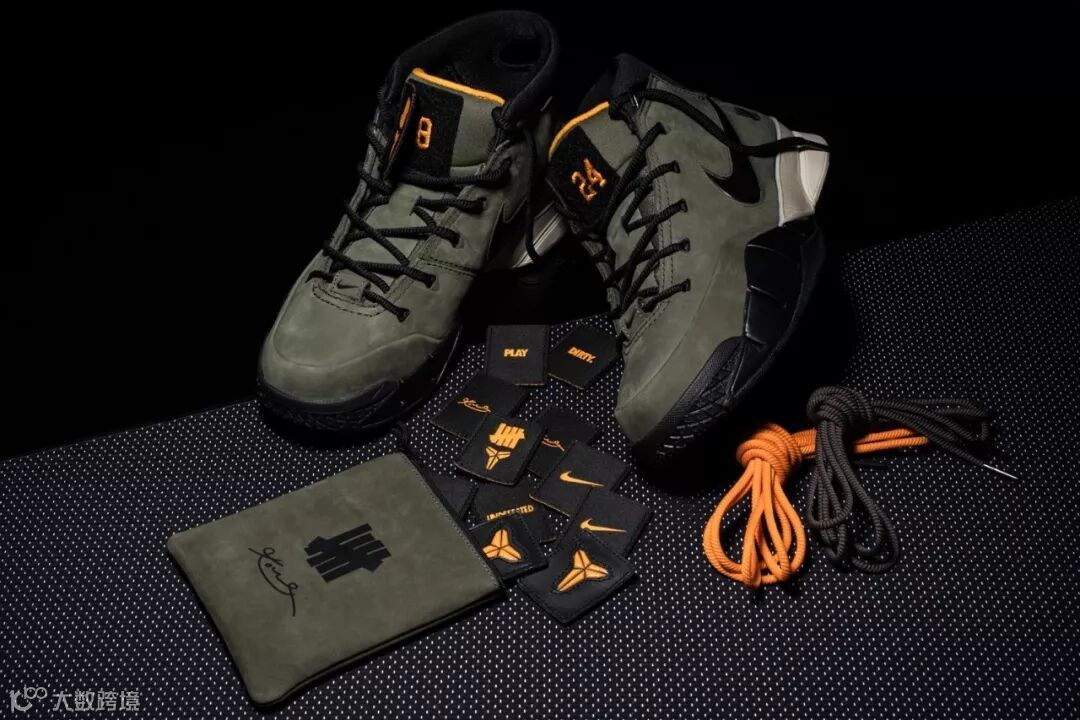 正如此前网络上曝光的图片所示,这双 Kobe 1 Protro 在设计上采用代表 UNDEFEATED 军事风格的橄榄绿作为鞋身主调,并融入橙色和黑色营造对比,在鞋舌和后侧均可看到「Five Strikes」Logo 点缀。