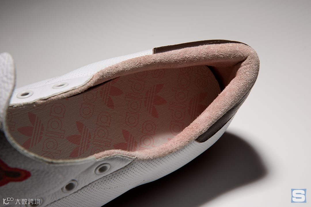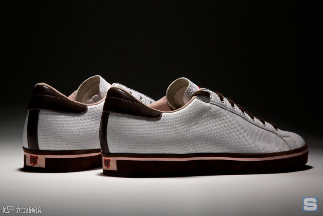 adidas 选了当时 Kanye 最喜欢的鞋款 Rod Laver ,使用白色的透气网布鞋身配上局部的咖啡色皮质,既正式又休闲的外观和配色,呼应了 Kanye 当年崇尚的「学院风」,鞋舌以及鞋跟处都印有 Kanye 当年个人图案「Dropout Bear 」。