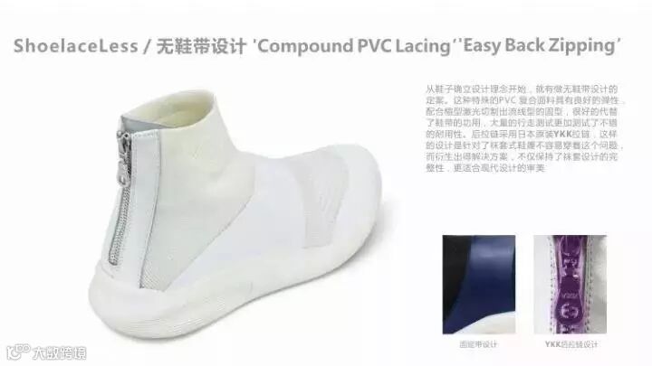 ▲后跟拉链采用了日本的YKK拉链,这样的设计也方便解决了袜套鞋不方便穿着的问题▲