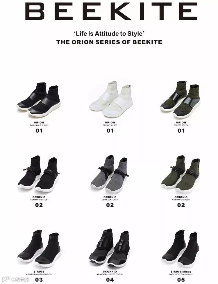 而到目前为止BEEKITE也已经陆续推出九个产品了,无鞋带、袜套包裹、流畅的设计线条这几个元素就是对这九双鞋款的第一印象。当中除了Orion one这一系列外,也有与国内品牌合作的系列,每款在细节中都有着一些值得细细探索的特色元素。