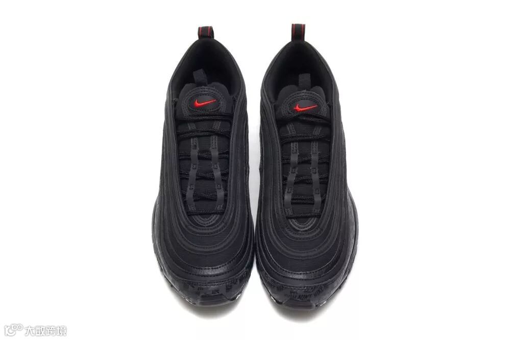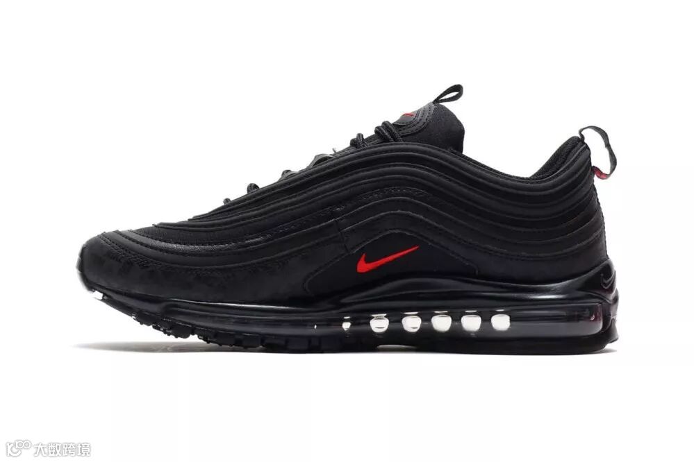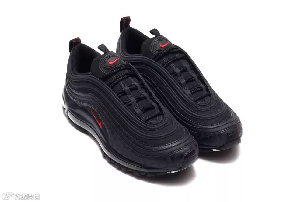 鞋身上加入了黑色的「NIKE」字样作为暗花图案,为此款 Air Max 97 大大增加独特卖点。