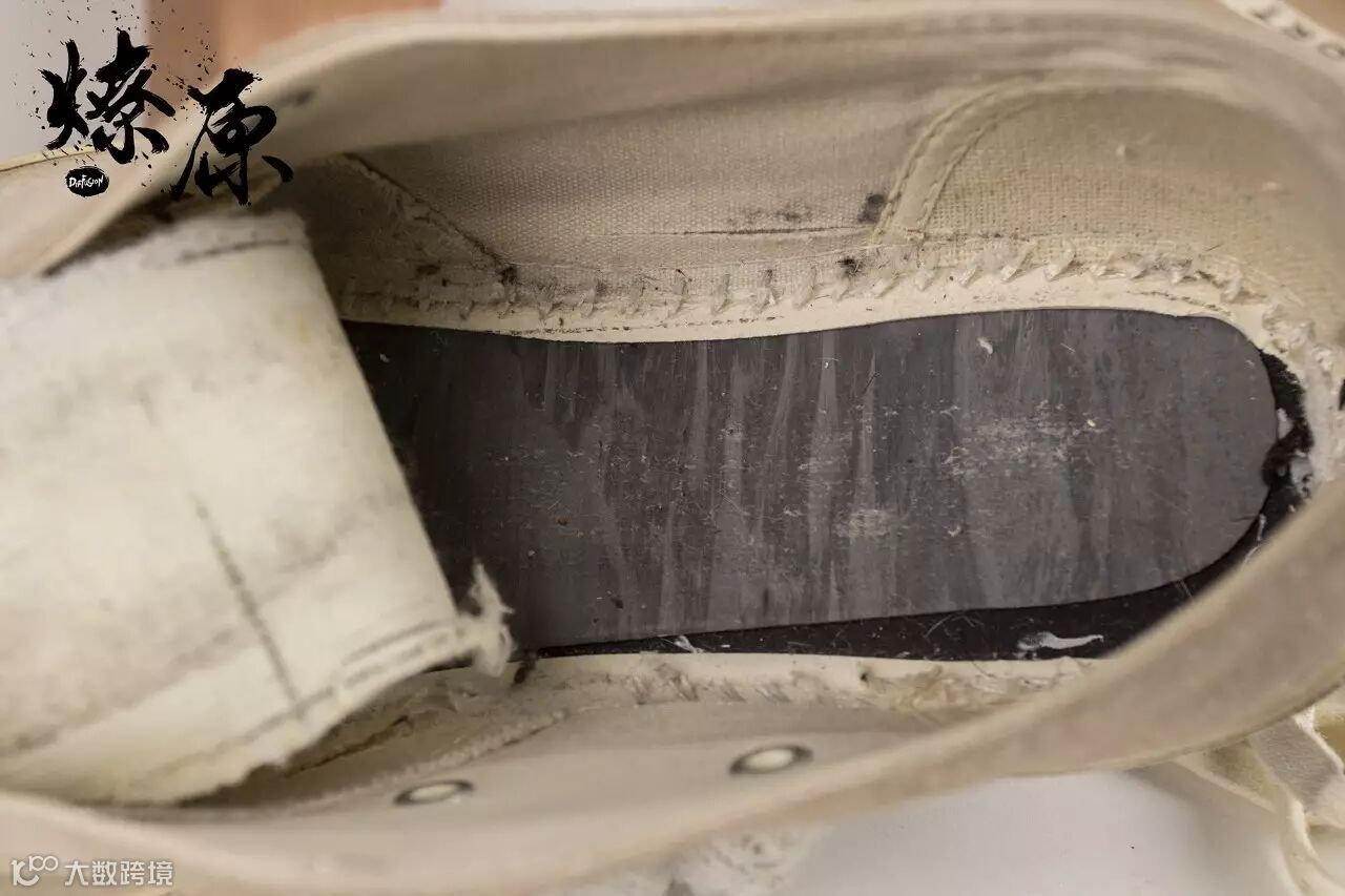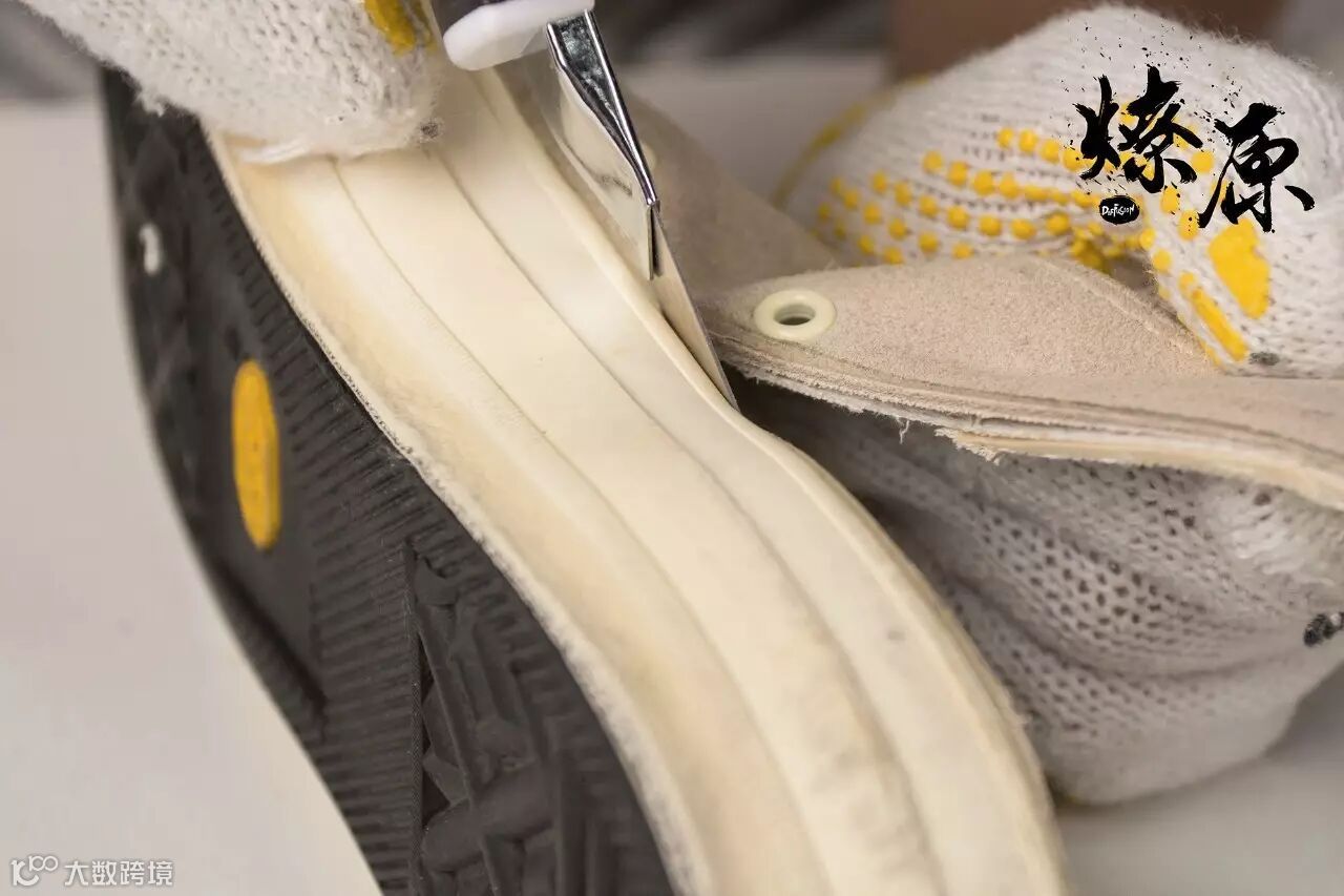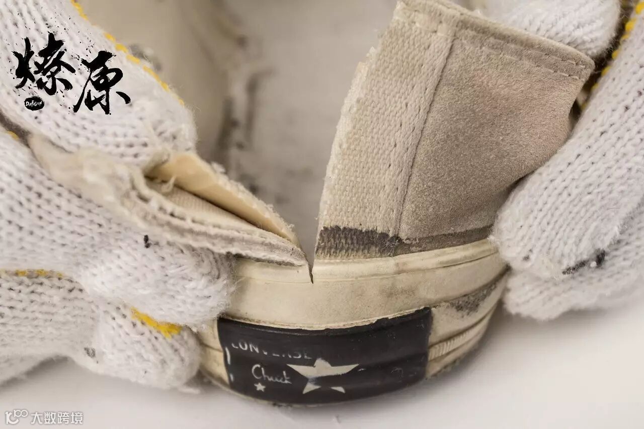 ▲首先是鞋款的外层,没有匡威惯有的黑边,由于是15年的鞋款可以看出因为氧化而导致白边有些泛黄。但还是能感受到麂皮厚重的质感,导致“燎原拆迁办”在拆解外层时也是花了不少功夫。▲