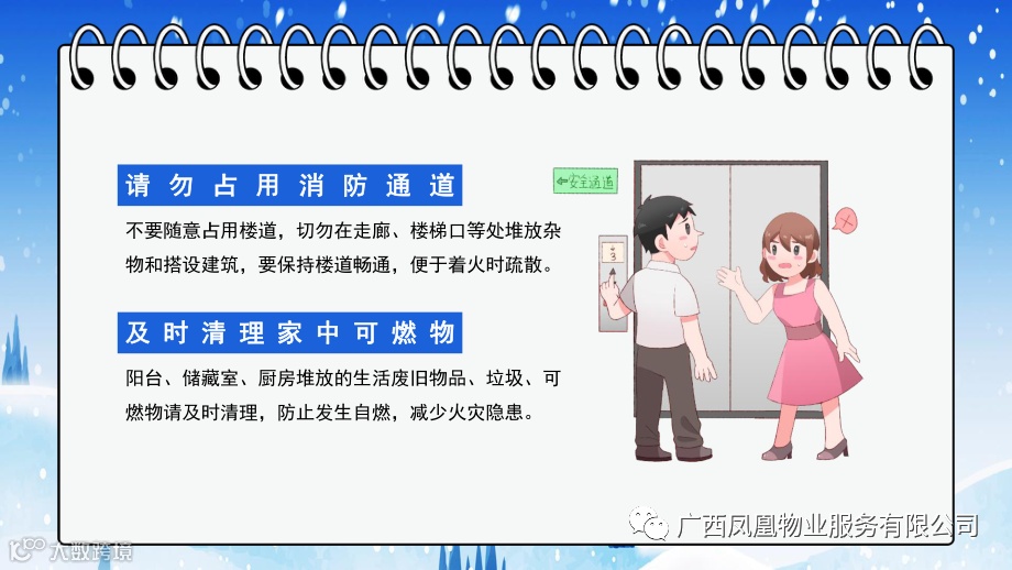 小区楼道属于公共消防通道,是广大居民日常出行的唯一通道,部分住户将杂物堆放在小区楼道内,影响了居民的进出通行和整体环境,同时也存在安全隐患。当发生地震、火灾等自然灾害的时候,将严重影响他人逃生。