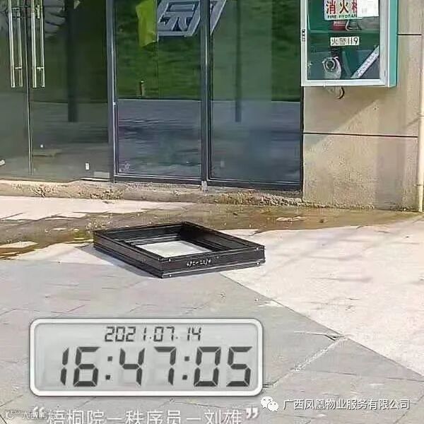 7月18日秩序部工作人员日常巡查发现一期车库集水井盖被一辆超载车辆压塌损坏,跟进沟通协调车主修复。