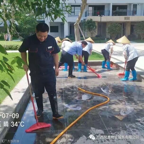 7月9日物业服务中心组织全体工作人员参与对一期园区景观水池进行清洁,给业主增加了居住环境的舒适感。