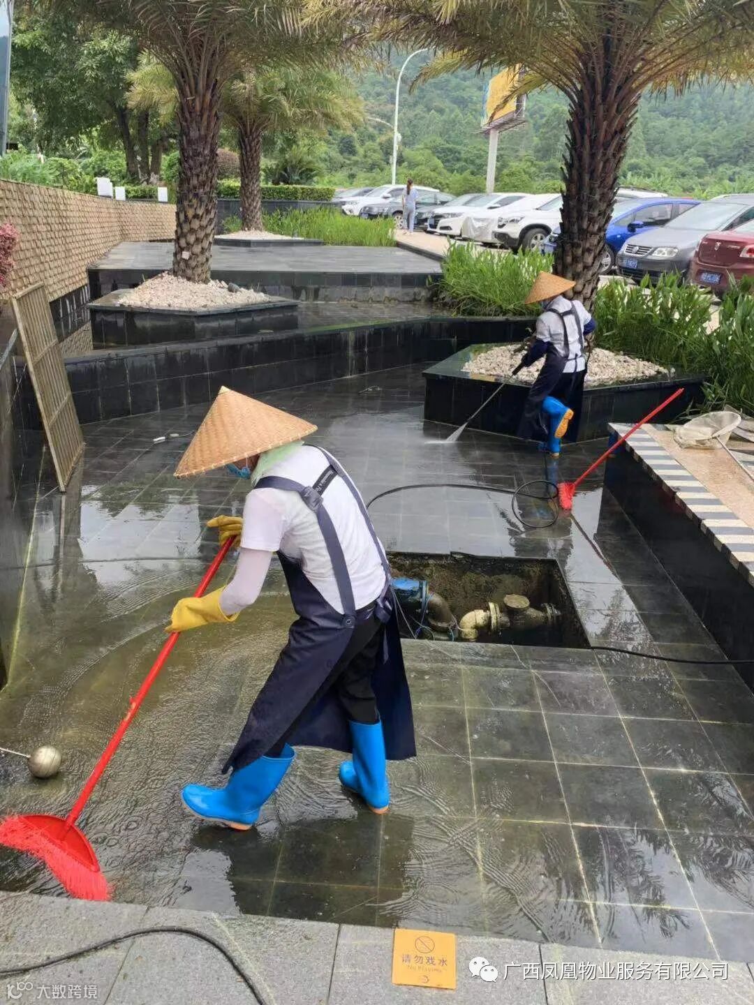 ✿ 打扫住户门前积水