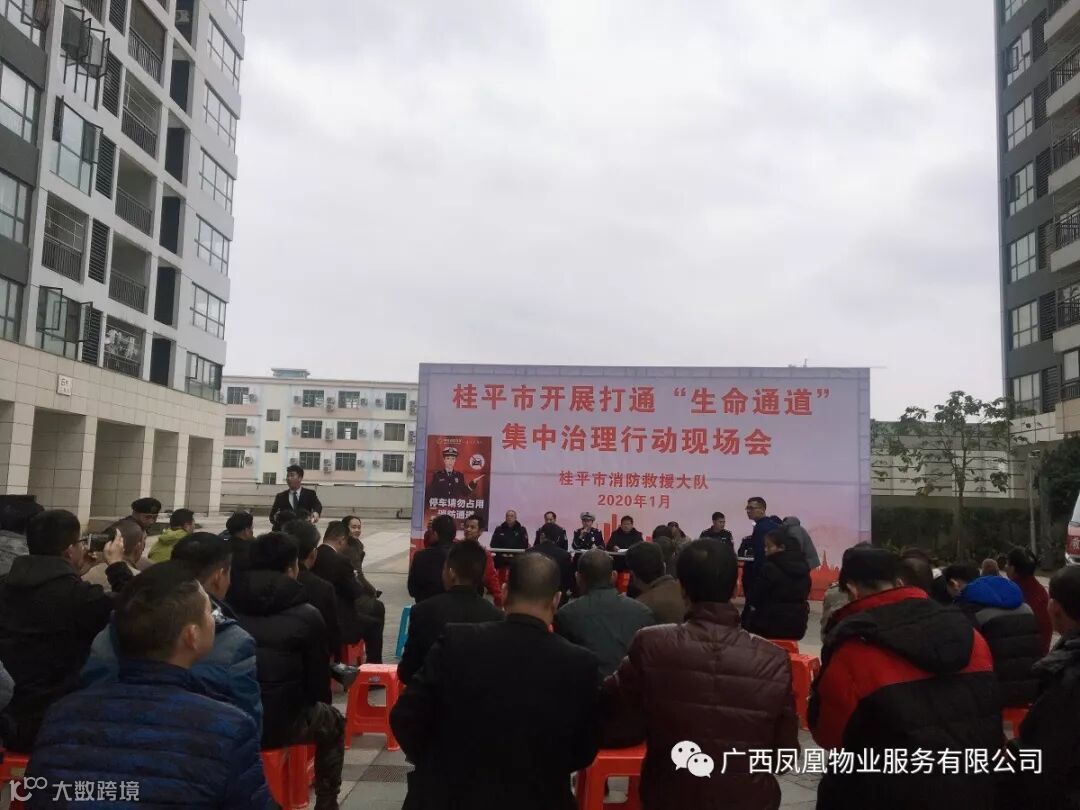 根据桂平市应急管理部消防救援局统一部署,为吸取近期火灾事故教训,切实加强消防车通道管理,确保消防车道畅通。经过消防大队对全市各小区消防通道的检查,把凤凰城小区作为消防车安全通道示范点,同时在凤凰城小区6#小广场前召开打通桂平市“生命通道”集中治理行动现座谈会,现场邀请了桂平市各物业服务企业经理、业主代表参与,活动共三个议程今天的活动共有三项议程: