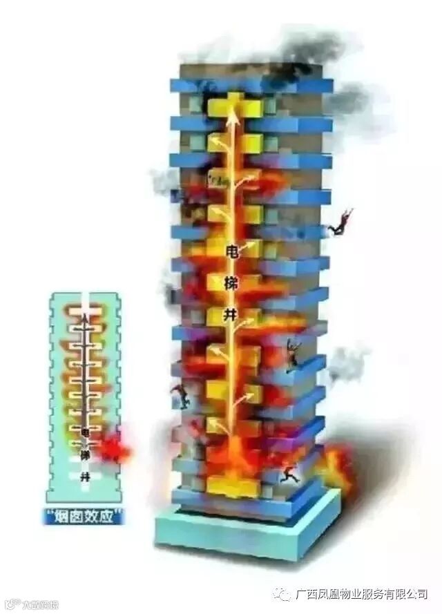 高层建筑发生火灾时,空气沿着有垂直坡度的空间升降,会造成对流加强的现象。
