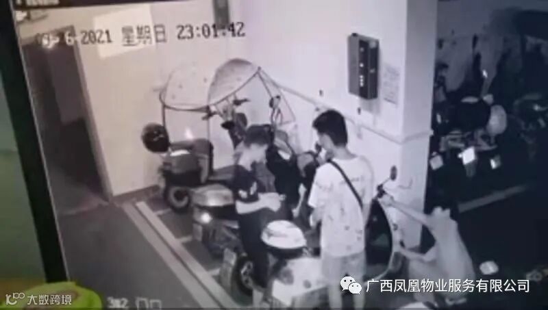 9月27日23:07分监控发现3栋二单元地库有三名可疑人员,通过秩序部布防、监控追踪,发现该三名男子系偷电车人员。