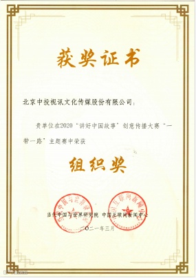 日前,中投视讯在2020“讲好中国故事”创意传播大赛“一带一路”主题赛活动中,组织能力突出,选送作品出彩,被授予主题赛“组织奖”。“讲好中国故事”创意传播大赛是由国务院新闻办公室指导、中国外文局主办、中国互联网新闻中心承办的面向国内外社会公众公开征集各领域中国故事、传播中国好声音、树立中国良好国际形象的年度官方品牌活动。