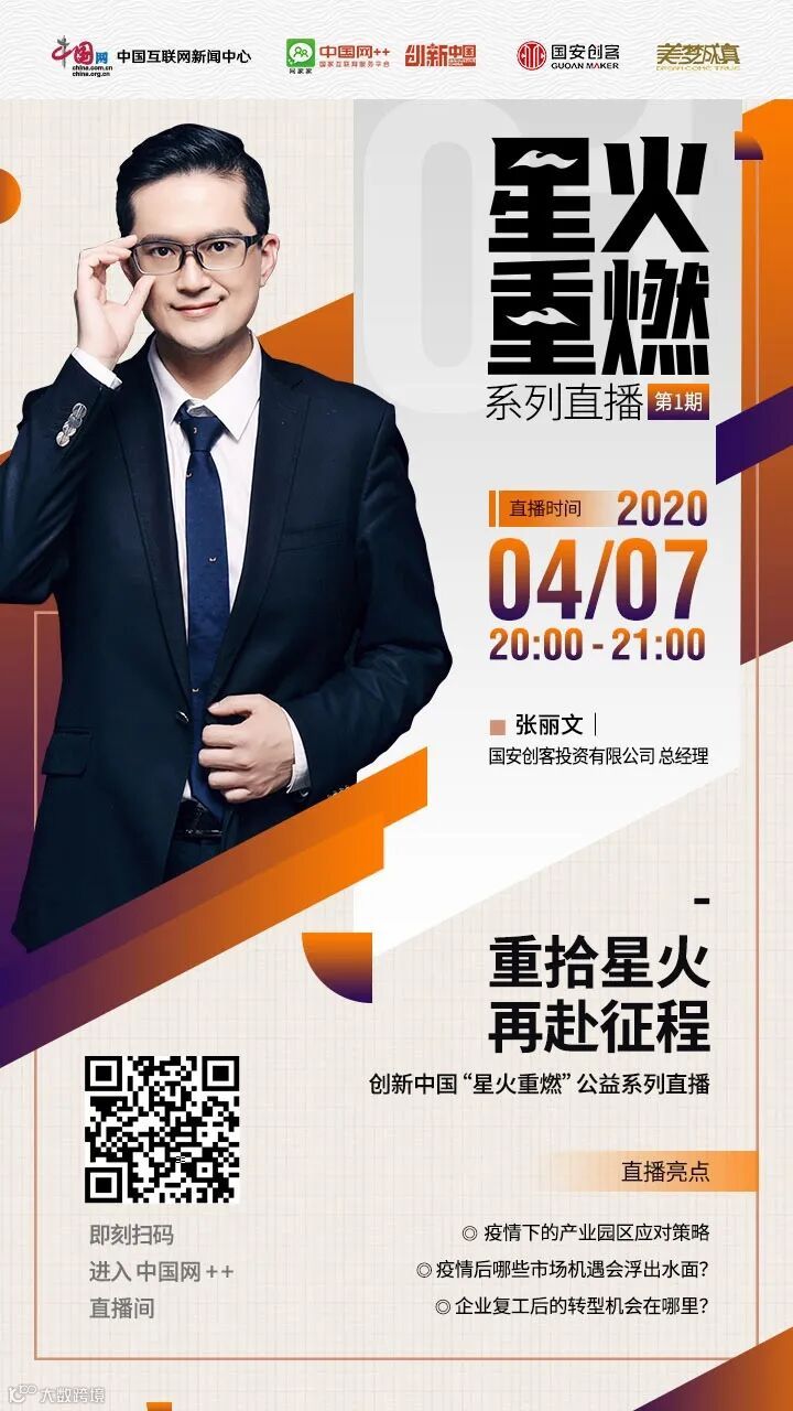 星火重燃系列直播第1期邀请国安创客投资有限公司总经理 张丽文,分享《重拾星火 再赴征程》主题直播。