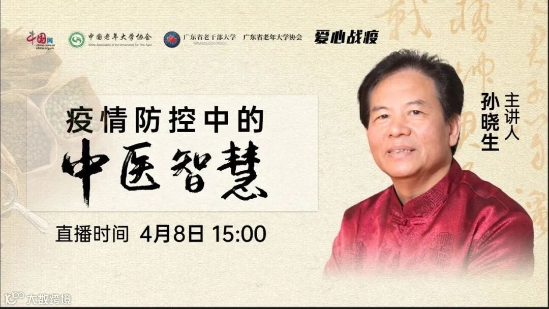 广东省老干部大学养生系教授、享受国务院特殊津贴专家、广州中医药大学原副校长,博士(博士后)导师孙晓生教授,为我们解读《疫情防控的中医智慧》,让您通过这场直播收获满满的科学性、普适性保健养生知识。
