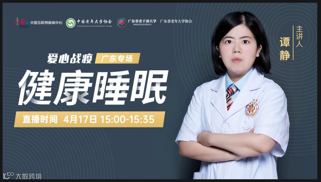 4月17日,我们将会邀请到东莞市老年大学兼职教授、东莞市中医院脑病科中西结合主任医师谭静为我们详解什么叫睡眠?怎么判断自己是否失眠?失眠了怎么办?有关睡眠的常见错误观念,助眠小技巧及膳食。敬请关注!