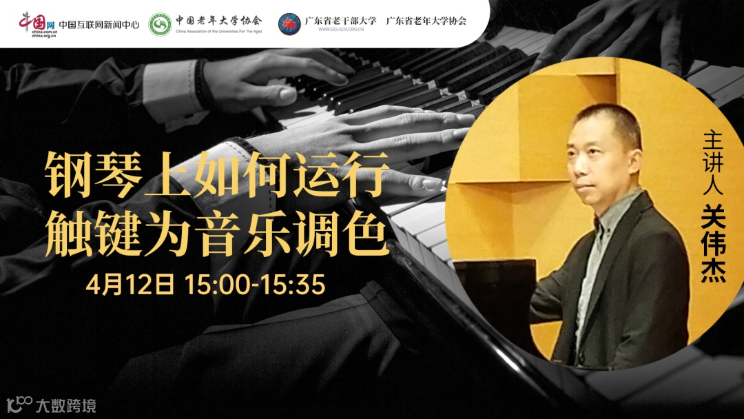 广州老年大学钢琴教师、数十次荣获各类钢琴比赛“优秀指导教师”称号的关伟杰老师为我们讲述钢琴上靠什么来为音乐调色?钢琴是怎样发出不同的声音?我们如何运用手指来做到这些不同的声音?带你轻松玩转钢琴!