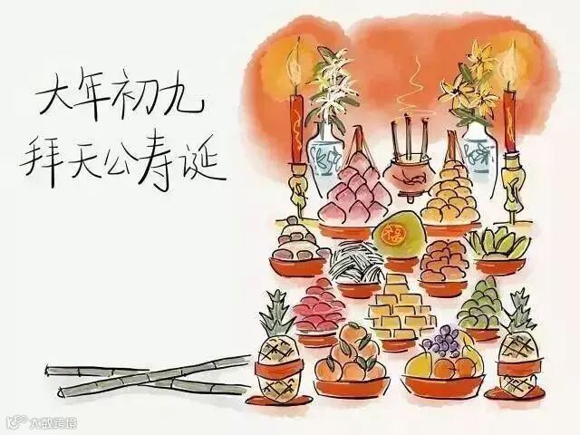 民间认为农历正月初九是玉皇大帝的生日,即所谓的“玉皇诞”、“天公生”,亦称“天日”。这一天里道观要举行盛大的祝寿仪式,诵经礼拜。家家户户于此日都要望空叩拜,举行最隆重的祭仪。