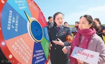 3月30日,江苏省灌云县党员志愿者组织的“减税降费在行动”微型党课走进潮河湾风景区,向万亩油菜花田里的游人传递减税降费好声音。