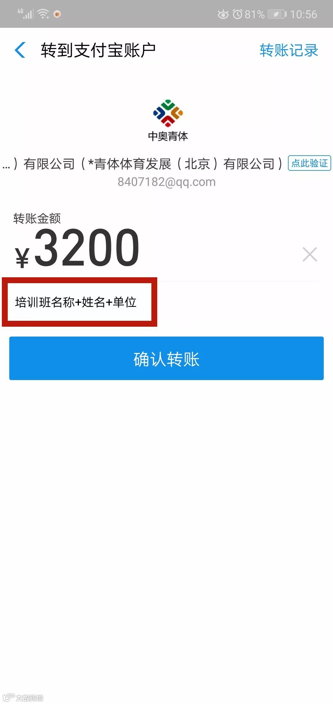备注:培训班名称+姓名+单位