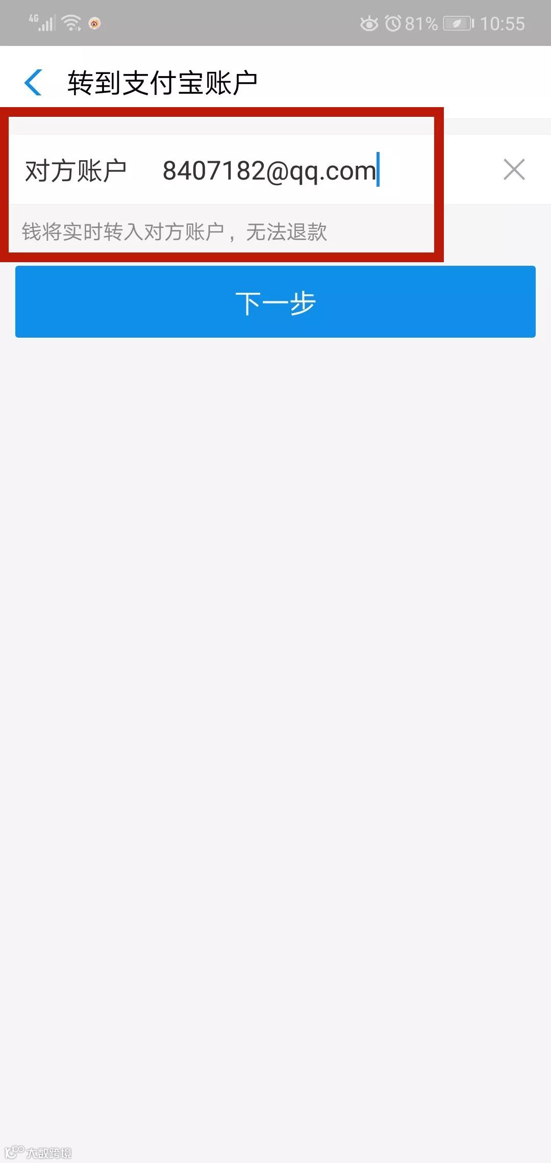 三、输入转账账号