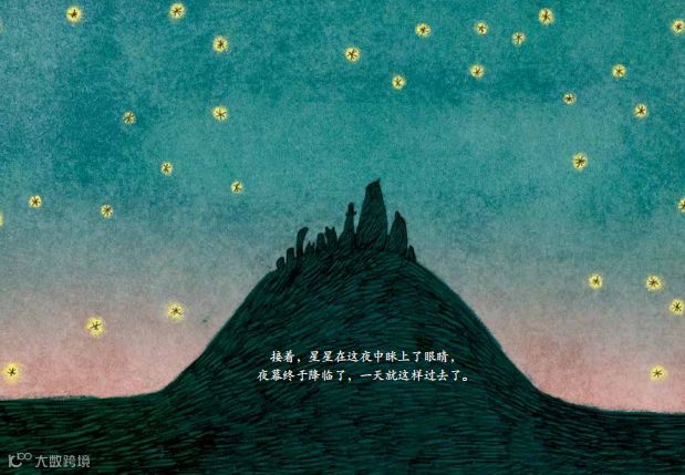 接着,星星在这夜中眯上了眼睛, 夜幕终于降临了,一天就这样过去了。