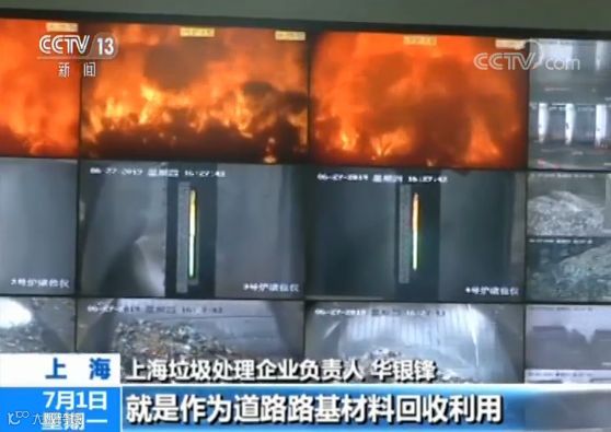 上海垃圾处理企业负责人华银锋:按照目前的情况,每吨垃圾可以发电500度左右,主要是输入电网,还有垃圾焚烧以后产生的一部分炉渣,作为道路路基材料回收利用;还有产生的一些飞灰,作为危险废弃物,都在厂内稳定化处理以后,送到上海市固定的填埋处置点进行填埋。