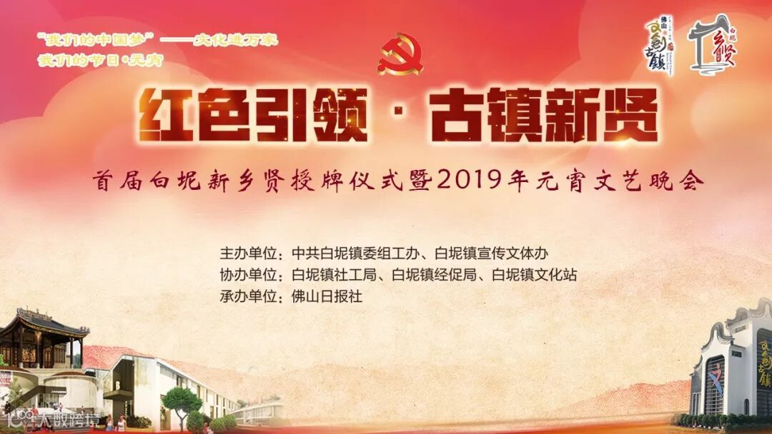 2月18日,“红色引领 古镇新贤”首届白坭十大新乡贤授牌仪式暨2019年元宵文艺晚会,将在佛山市三水区白坭文化广场举行。届时,白坭镇将会为红色新贤、慈善新贤、产业新贤、文化新贤以及白坭新乡贤突出贡献人物进行颁奖,著名军旅歌唱家于丽娜、特邀歌手汪晓琳也将登台献唱,与您共度元宵!
