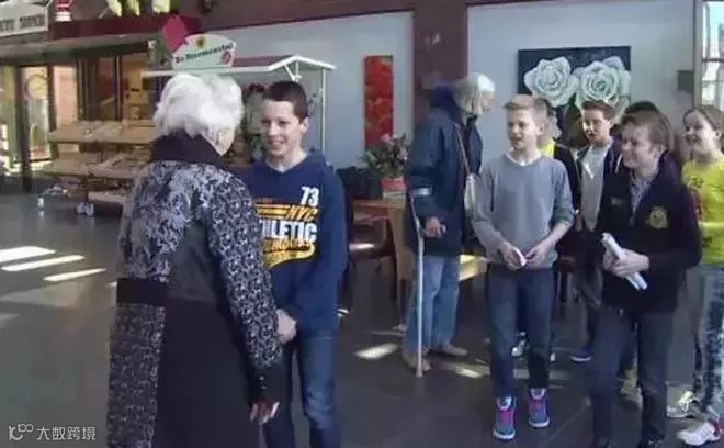 附近学校的孩子们组队来看望老人,给他们讲有趣的事情,相信温暖的关照比吃多少药都管用。