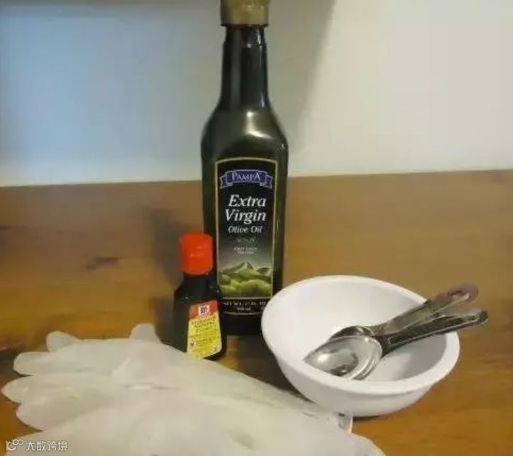 然后可以用橄榄油擦手,抹上厚厚一层护手霜~