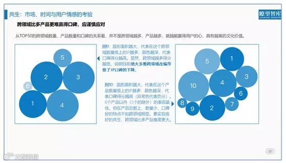 过往IP评价的一个重大缺陷是,主要针对文化符号在某一文化领域的表现,缺乏对其跨领域情况的评估。但跨领域和多产品,是一个文化产品之所以成为IP的主要特征。多领域共生也是衡量IP生命力的主要标准:它究竟是“一红而过”的爆款,还是能够不断衍生、创造更多文化价值和利润的文化符号?