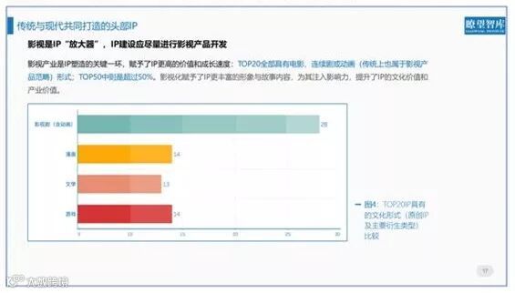 同时,考虑到目前中国的文化事业还在发展过程中,文化产品中的角色、形象等文化符号还需要进一步成长,因此《报告》仅针对文化产品IP。