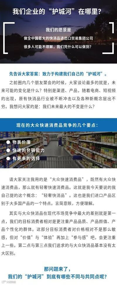 我们的愿景是,“做全中国最大的快消品进出口贸易集团公司”。很多人可能不理解,我们凭什么可以做到?