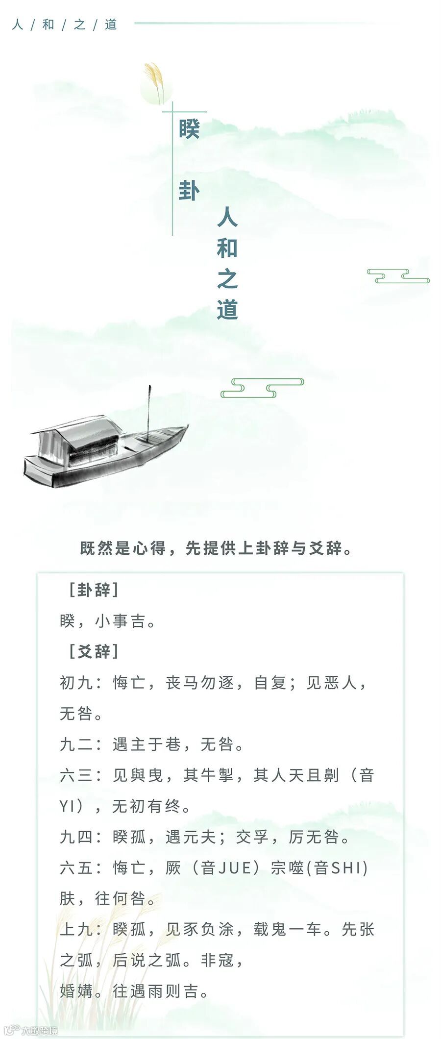学会沟通,舍得吃亏,阴阳二气才能交融,这就是“往遇雨则吉”的含义。