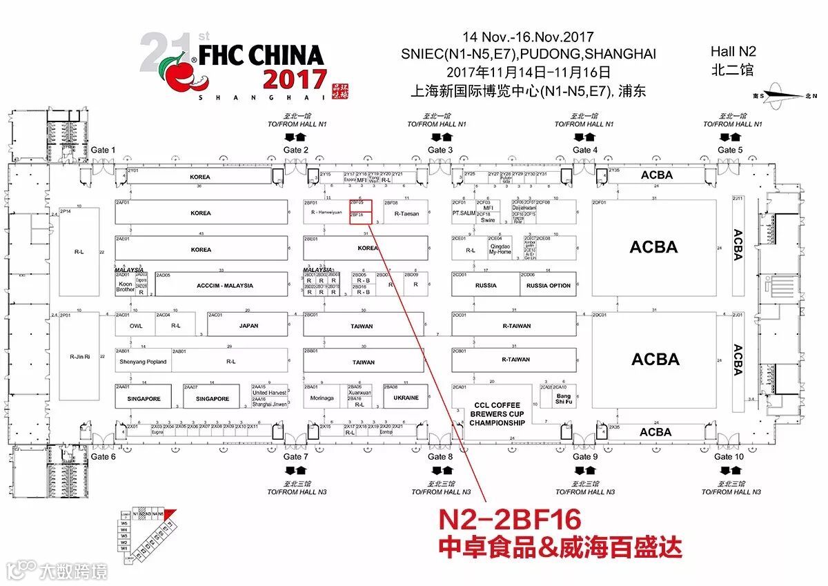 本次展会中卓食品&威海百盛达的位置——N2-2BF16