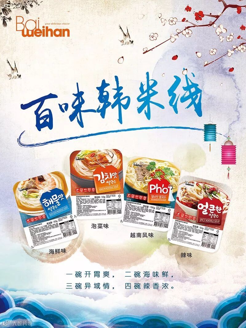 百味韩米线(韩国)——非油炸,比普通的拉面(油炸)低40%的热量,爱美朋友的最佳选择。四种口味更多美味。