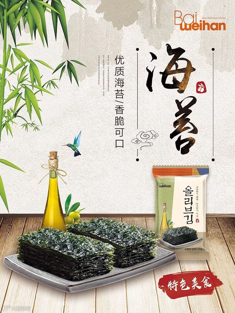 百味韩海苔(韩国)——优质海苔,天然橄榄油,香脆可口。