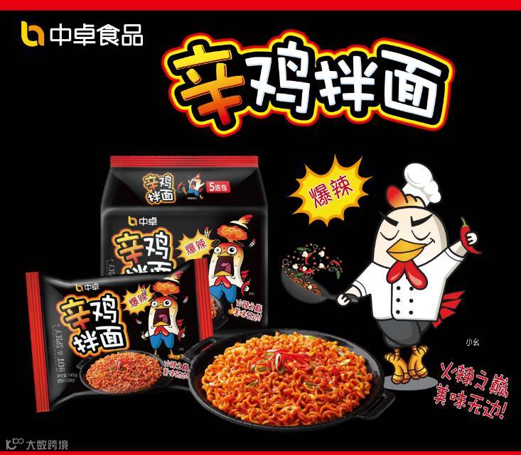 中卓辛鸡拌面——口感筋道爽滑,“辣-弹-爽”,辛辣中伴有炭烧风味,一经上市就受到消费者的青睐。