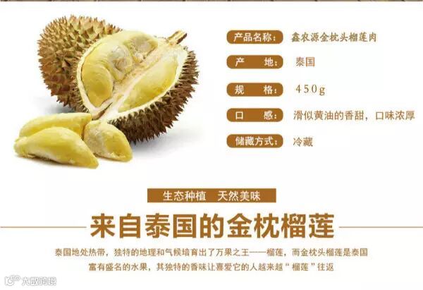 导读:鑫农源树熟榴莲金枕头冷冻, 泰国原装,全熟口感。