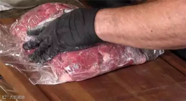 最后用保鲜膜包起来,放进另一个袋子中真空包裝后,放入冰箱过一晚,牛排就此成型。