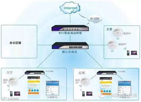 万商无线智慧wifi覆盖方案是指通过万商无线智慧WIFI进行WLAN网络覆盖,打造智能化系统。该系统由硬件网关设备(WAM系列)+无线AP(WAP系列)进行组网,结合万商维盟自主发开的智慧WiFi云端营销平台构成,在确保会展中心无线WiFi安全部署完成的同时,可利用智慧WiFi云平台集中统一、分级配置下发商家宣传推广信息。
